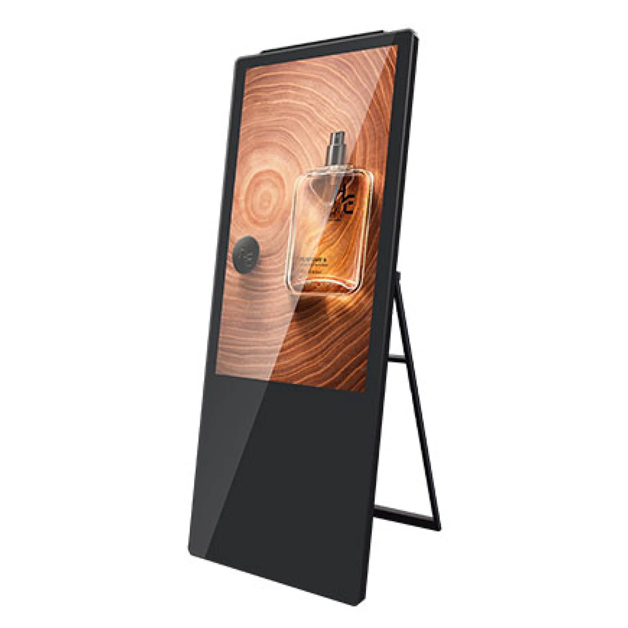 The Indoor Portable Kiosk is a versatile and highly sought-after digital signage solution, praised for its lightweight structure and secure triangular design, making it easy to transport and set up. The portable LCD display and adjustable support leg enable users to customize the angle and positioning for optimal visibility and flexibility. For added convenience, an optional 360° spinning wheel base is available, allowing seamless movement between different locations. This feature is particularly beneficial in dynamic environments like restaurants, hotels, cafés, and retail spaces. Additionally, its foldable design allows for efficient space-saving storage, ensuring the kiosk can be compactly stored when not in use. This feature helps businesses make better use of their floor space, freeing it up for other essential items.